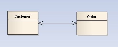 关联(Association) : 对象之间一种引用关系,比如客户类与订单类之间的关系。这种关系通常使用类的属性表达。关联又分为一般关联、聚合关联与组合关联。后两种在后面分析。在类图使用带箭头的实线表示,箭头从使用类指向被关联的类。可以是单向和双向。![]()