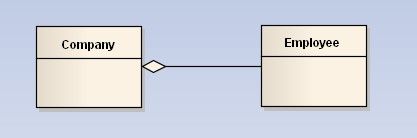 聚合(Aggregation) : 表示has-a的关系,是一种不稳定的包含关系。较强于一般关联,有整体与局部的关系,并且没有了整体,局部也可单独存在。如公司和员工的关系,公司包含员工,但如果公司倒闭,员工依然可以换公司。在类图使用空心的菱形表示,菱形从局部指向整体。![]()